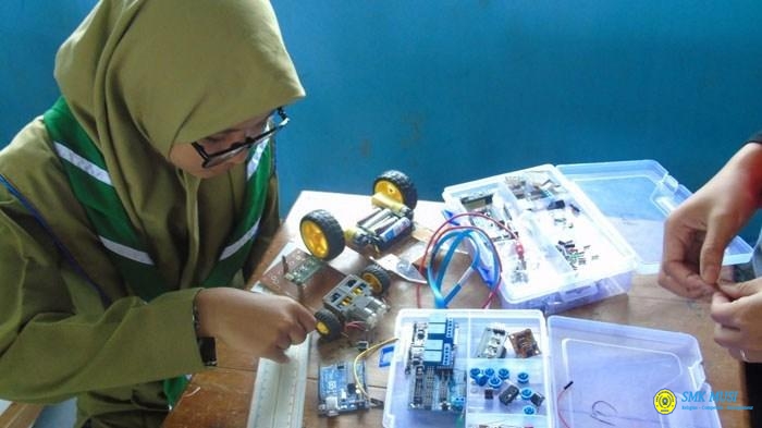Robot hasil kreasi siswa bernama Safna Safela Maulina dari Jurusan Rekayasa Perangkat Lunak, yang juga dibimbing oleh Pembina Diana Fatwa Pangesti, telah siap untuk tampil dalam helatan di tingkat nasional.