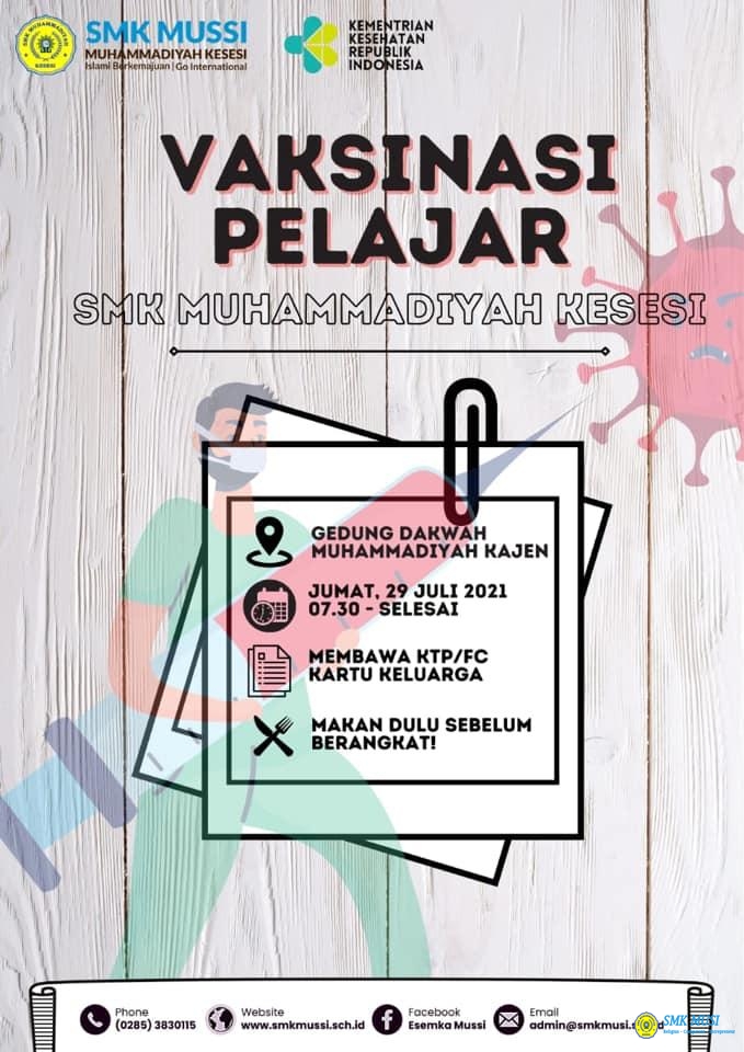 SMK Muhammadiyah Kesesi menyelenggarakan Vaksin khusus siswa bekerjasama dengan Pimpinan Daerah Kabupaten Pekalongan dan Dinas Kesehatan Kabupaten Pekalongan, hal ini dilakukan untuk mempersiapkan kegiatan belajar mengajar tatap muka.